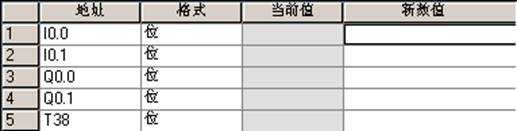 因為不帶負載進行運行調(diào)試,所以采用強制功能模擬物理條件。對I0.0進行強制ON,在對應(yīng)I0.0的新數(shù)值列輸入1,對I0.1進行強制OFF,在對應(yīng)I0.1的新數(shù)值列輸入0。然后單擊工具條中的“強制”按鈕。