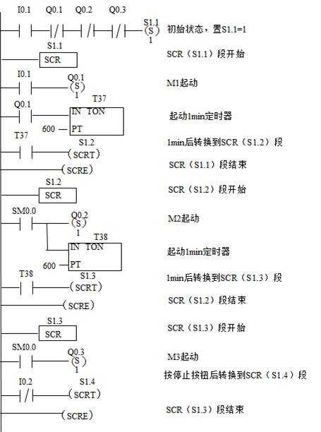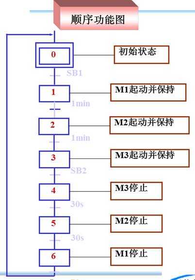 3臺電動(dòng)機(jī)M1~M3,要求間隔1min順序起動(dòng)和間隔30s逆序停止起動(dòng)按鈕SB1和停止按鈕SB2, 3臺電動(dòng)機(jī)M1~M3分別用接觸器KM1、KM2、KM3控制