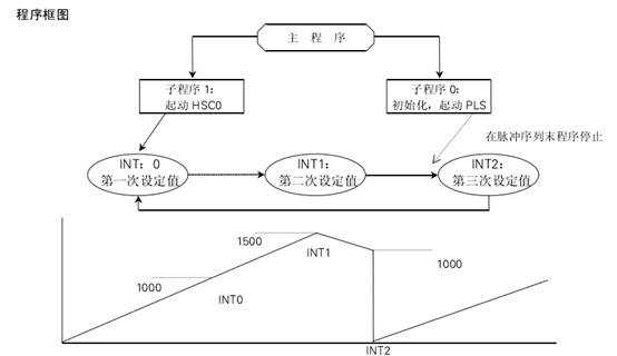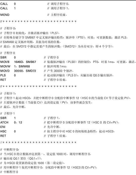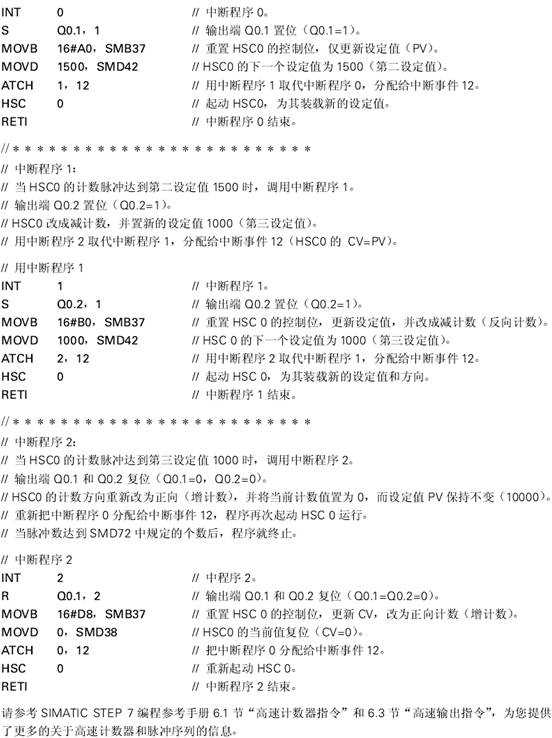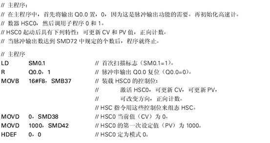 下面這個例子,展示了用HSC和脈沖輸出構成一個簡單的反饋回答,怎樣編制一個程序來實現(xiàn)反饋功能。