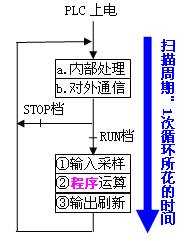 ◆PLC工作1個循環(huán)需要“經(jīng)歷”若干步驟(一般為5個),對這若干步驟按順序“掃描”1遍所花的時間,稱為“掃描周期T”。
