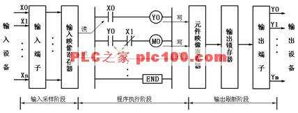 PLC執(zhí)行程序的過程分為三個階段,即輸入采樣階段、程序執(zhí)行階段、輸出刷新階段,如圖1所示。