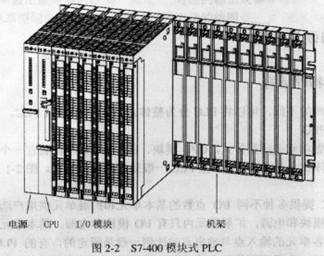 大、中型PLC(如西門子的S7-300和S7-400系列)一般采用模塊式結構。模塊式PLC用搭積木的方式組成系統(tǒng),它由機架和模塊組成(見圖2-2)。模塊插在模塊插座上,后者焊在機架的總線連接板上,有的廠家將機架稱為基板。PLC廠家備有不同槽數(shù)的機架供用戶選用,如果一個機架容納不下所選用的模塊,可以增設一個或數(shù)個擴展機架,各機架之間用I/O擴展電纜相連,有的PLC需要通過接口模塊來連接各機架。